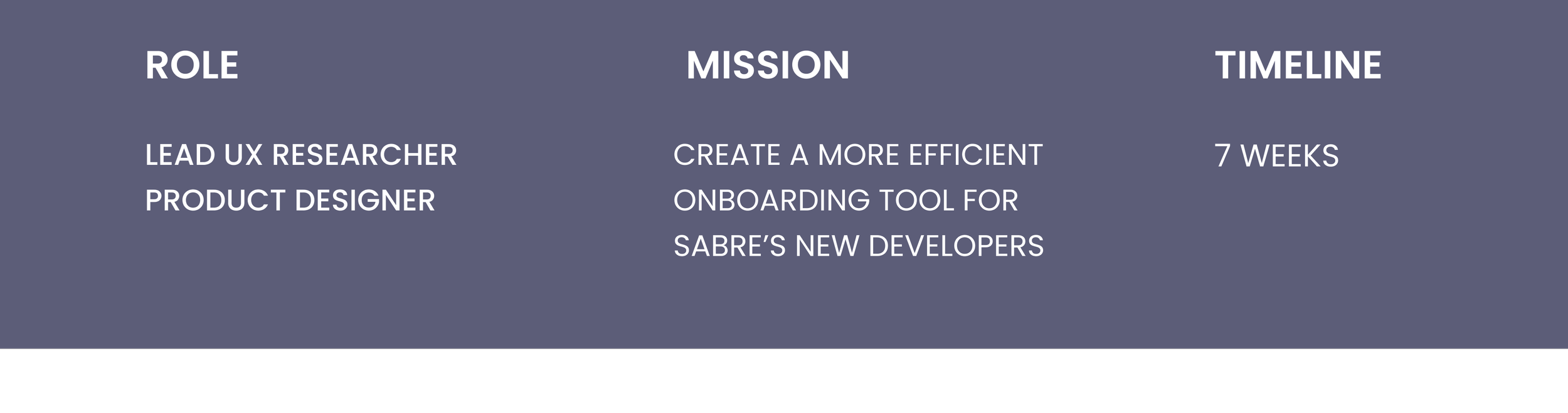 CREATION OF AN ONBOARDING PORTAL FOR SABRE’S DEVELOPERS AND ENGINEERS.