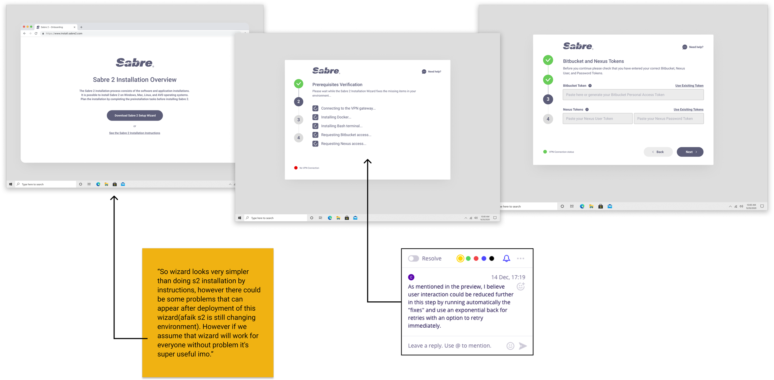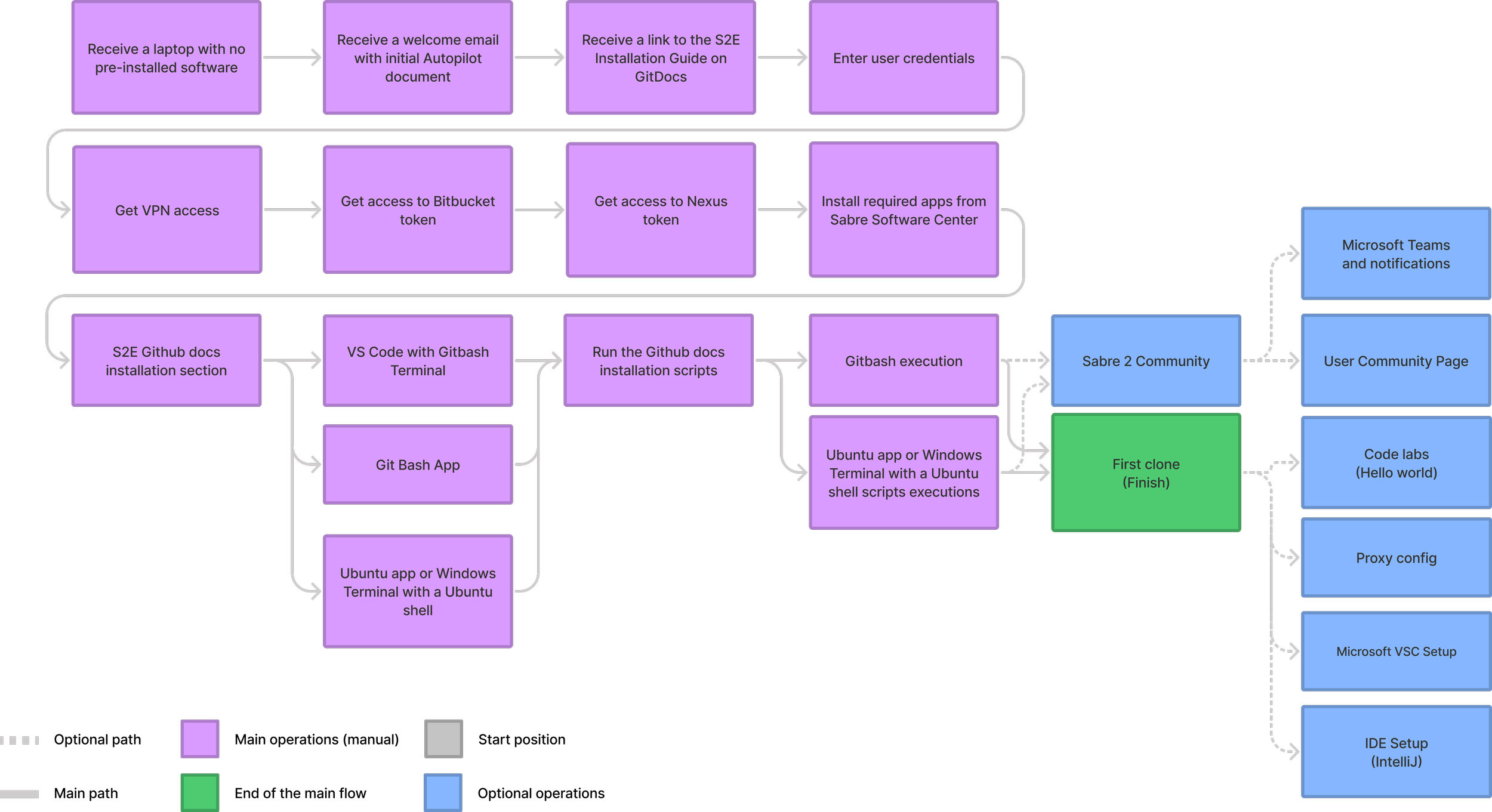 When going through their onboarding, users (developers) are having to spend upwards of 2 weeks waiting for accesses, being sent links and handmade google docs by their managers for next steps, with ultimately no standardised instructions to follow the installation of Sabre2.